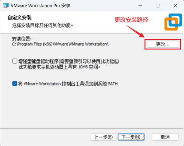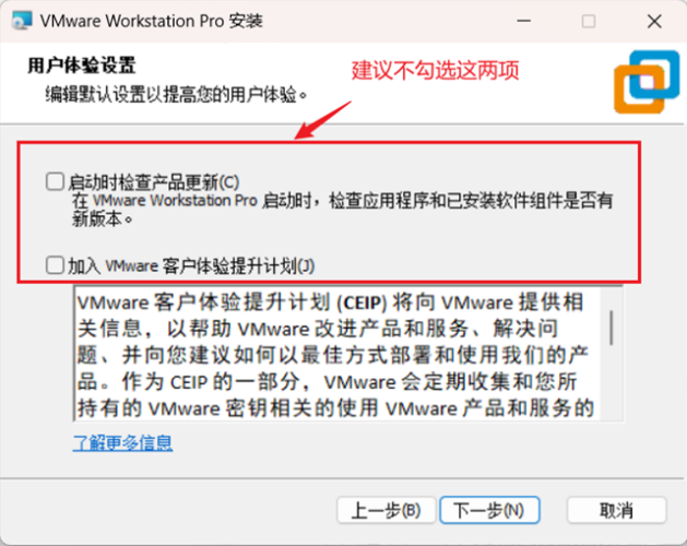 在(zài)上(shàng)图(tú)中有(yǒu)两(liǎng)个(gè)選項,我(wǒ)们(men)都選中,这(zhè)樣(yàng)在(zài)安(ān)裝(zhuāng)完成(chéng)以(yǐ)后就(jiù)会(huì)在(zài)開(kāi)始(shǐ)菜单和(hé)桌(zhuō)面(miàn)上(shàng)有(yǒu)VMware的(de)图(tú)标(biāo),選中以(yǐ)后點(diǎn)擊該图(tú)中的(de)“下(xià)一(yī)步”,進(jìn)入(rù)下(xià)图(tú)界面(miàn):