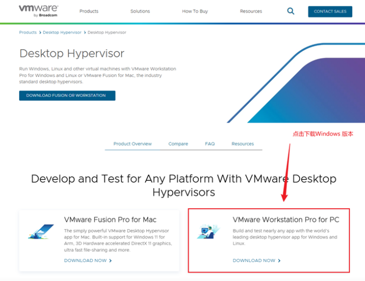 Vmware Workstation软(ruǎn)件(jiàn)可(kě)以(yǐ)在(zài)Vmware官网(wǎng)下(xià)载,下(xià)载地(dì)址:https://www.vmware.com/products/desktop-hypervisor/workstation-and-fusion#product-overview,我(wǒ)们(men)下(xià)载Windows版本(běn)的(de),如(rú)下(xià)图(tú)所(suǒ)示: